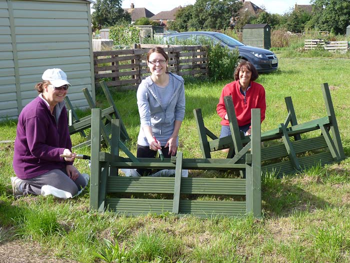 Earlier in the year the chairs and table outside of the members facilities were restored. Over the weekend the job was finished by Olivia, Carolyn and Karen who applied protective covering to the furniture, With John and Derek performing tea duties for the trusty trio. A big thank you to all. Photograph kindly supplied by Tony Holbrook.