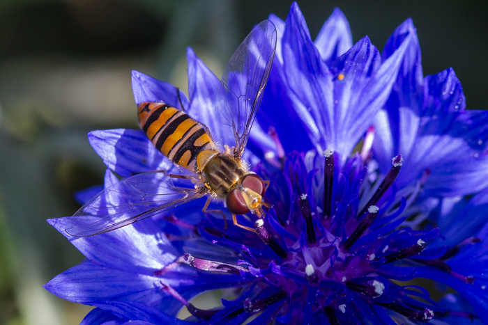 Around project 63 we have some rogue cornflowers that have made the compost bin their home, but equally attract a range of pollinators, including hover flies. This particular species, a marmalade hoverfly (Espisyrphus Balteratus) plus others are good for the allotment plot holder as they feed on decaying plant matter and aphids.