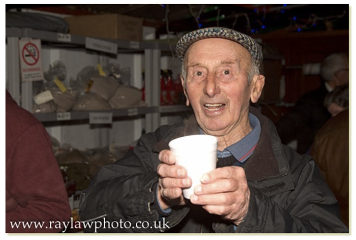 Peter Fox enjoying a cup of Tony's mystery brew at the mince pie and coffee morning, December 2014.