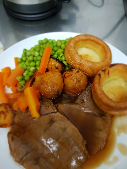 Prior to COVID-19 Sanctus volunteers would collect unsold sandwiches and cakes from Greggs, Pret a Manger, Tesco Express and other supermarkets at the end of their trading day. These foods would be kept in a fridge in the free café and service users could help themselves. Occasionally there would be vegetables donated and we would use these in our meals. Every day a hot meal would be freshly prepared and served. I would be responsible for the menu but basically it would be very traditional home cooking such as cottage pie, roast dinner, Bolognese, curry, casserole etc.
