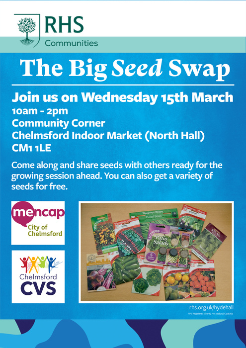 It may be a little late to publicise but on Wednesday 15th March at Chelmsford Market the RHS are holding a seed swap event which may prove interesting to members. A copy of the poster advertising the event can be seen above.