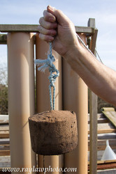 Place jar underneath to catch dark liquid which will drip from container after approximately two to three weeks. (Image right shows Laurie concrete weight - press - with the ingenious pipework behind). Dilute the liquid at rate of one part comfrey to 10-20 parts water. If liquid is thick and black use 20 parts water. If thin and brown use only 10-15 parts water.